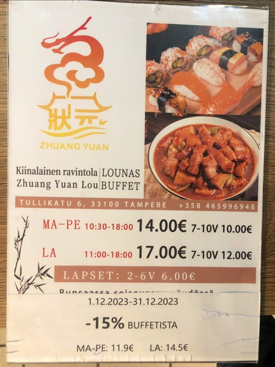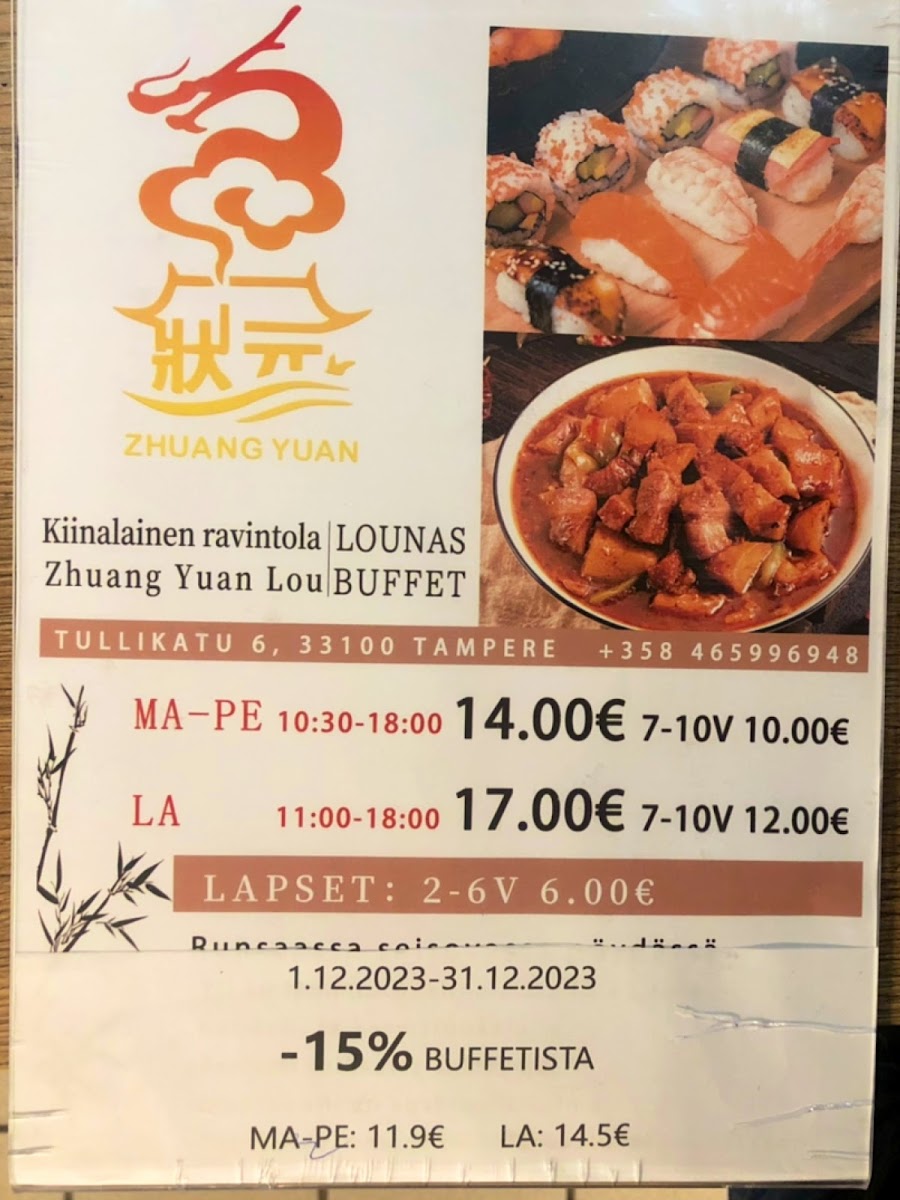 Ravintola Zhuang Yuan Lou Menu
